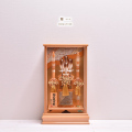 総檜造りの破魔弓飾りです。ケース背景や矢籠に寄木細工が施されております。小さくてもとことん素材にこだわり、弓まで檜造りとなっています。洋風なお部屋にもおしゃれに飾っていただけます。